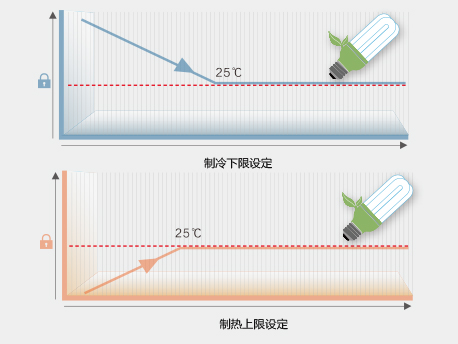 通過線控器設(shè)定制冷下限溫度與制熱上限溫度,節(jié)約能源避免用電浪費(fèi)。