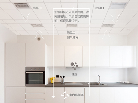 機(jī)組可智能檢測風(fēng)口油煙臟堵程度,并自動匹配風(fēng)機(jī)轉(zhuǎn)速,保證風(fēng)量